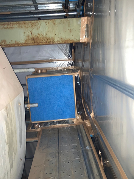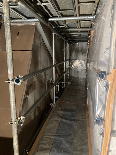 養生シートによって隔離された作業場内。