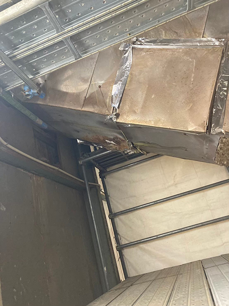 また、作業スペースも狭い為、ライトで光を確保し安全に気を付けながら除去作業へと臨みます。
