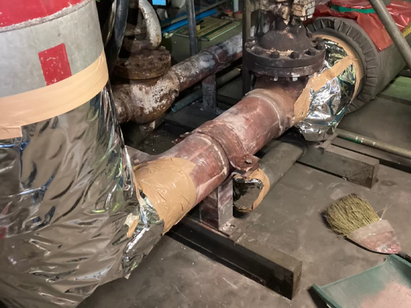2つ目の除去事例もボイラー室の配管保温材の除去ですが、こちらは直径が大きい配管です。