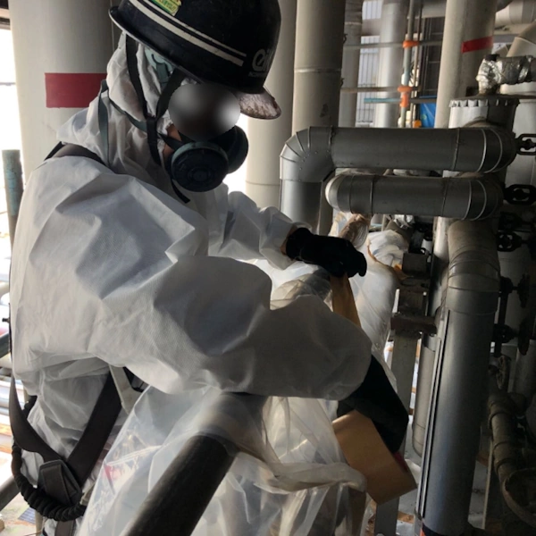 工場や発電所のような場所は、住宅とは比べ物にならないほど複雑な配管があり、保温材に石綿(アスベスト)が使われていることがよくあります。