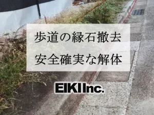 こんにちは。富山の解体工事会社、株式会社エイキ(EIKI Inc.)です。 「あぁ、この縁石さえなければ、もっとスムーズに車を出し入れできるのに… … 続きを読む 富山で歩道の縁石撤去。安全・確実な解体工事の流れ〔富山の解体会社ブログ〕