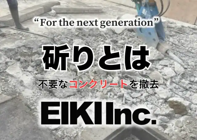 こんにちは。富山の解体工事会社、株式会社エイキ(EIKI Inc.)です。 今回は、解体工事の現場でよく耳にする「斫り(はつり)」という作業につい … 続きを読む 斫り(はつり)工事とは?コンクリート撤去の方法を富山の現場写真で解説