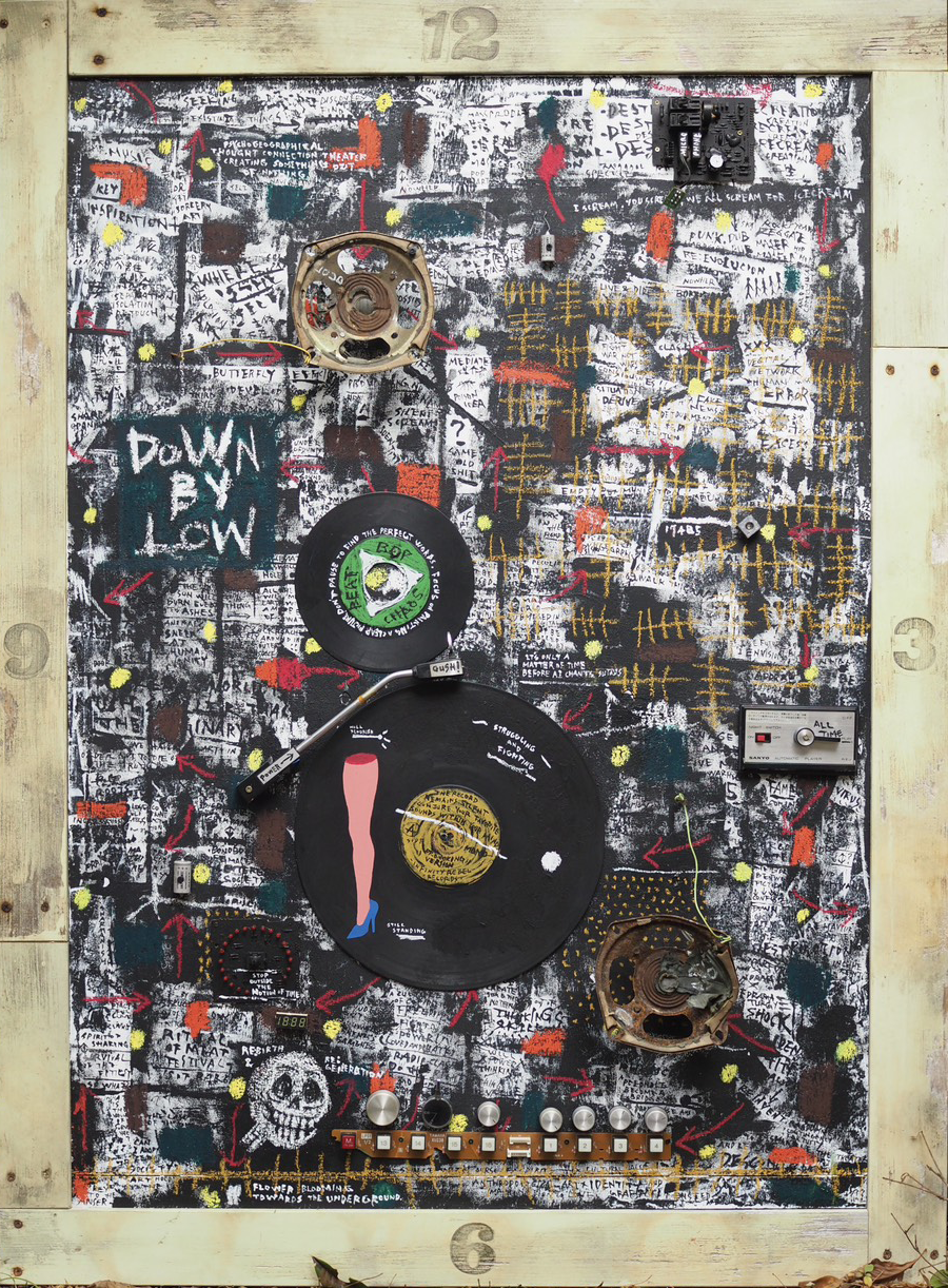 ジム・ジャームッシュの映画、ギイ・ドゥボールの心理地理学、日本人画家 佐伯祐三のカラーリング、バスキアのストリートグラフィティなどの要素を元に、廃材たちが偶然に集まり、結合して新たな作品として再生。流れる時間の隙間から飛び出して地下に咲いた花としての意味も込めた作品となっています。