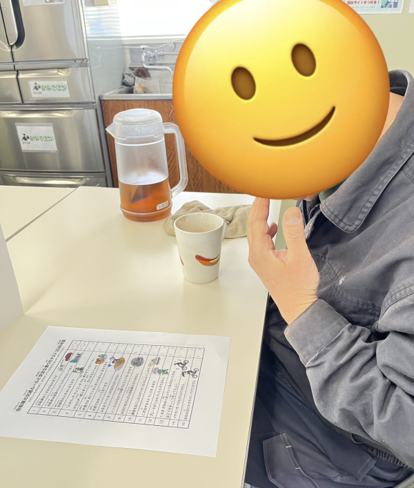 弊社には、自転車で通所される利用者さんがおられるので、自転車に乗る際のルールを簡易テスト方式で振り返ってもらいました。