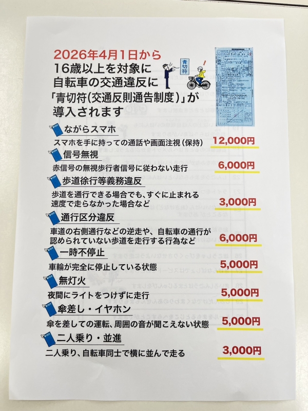 皆様は、4月から自転車の罰則が厳しくなることはご存知でしょうか?