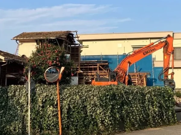 いよいよ重機で上屋(うわや:基礎より上の部分)を壊し始めます。